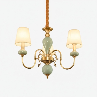 Altoris系列枝形吊燈,搭配布藝燈罩 – 客廳黃銅陶瓷吊燈
